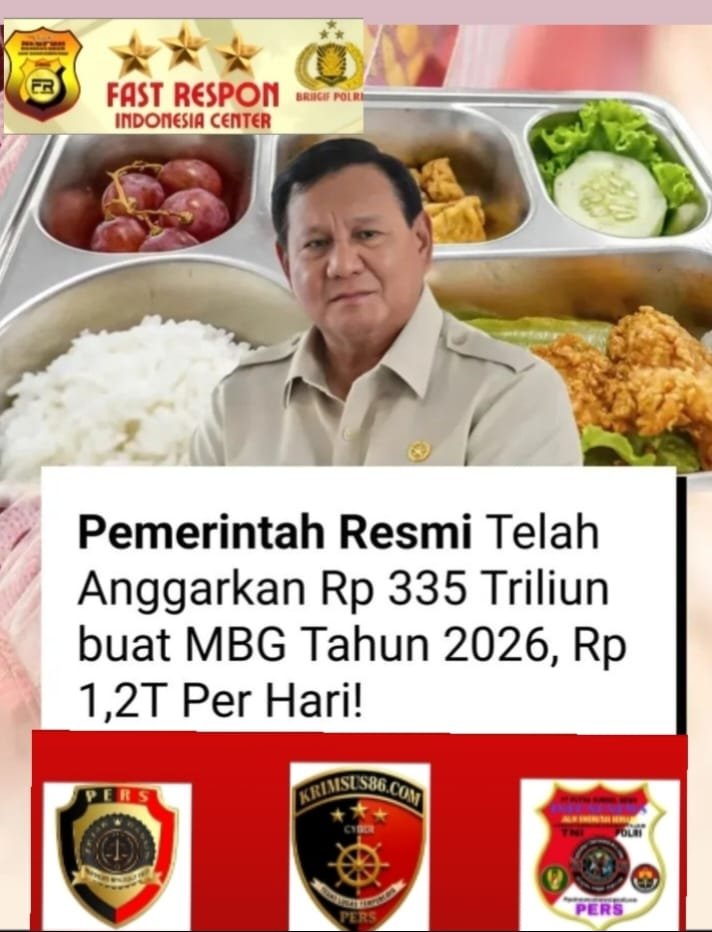 Krimsus86.com, MUARA ENIM – Pemerintahan Presiden Prabowo Subianto dan Wakil Presiden Gibran Rakabuming Raka mengalokasikan anggaran sebesar Rp335 triliun untuk pelaksanaan Program Makan Bergizi Gratis (MBG) pada tahun anggaran 2026. Alokasi tersebut setara dengan kebutuhan anggaran sekitar Rp1,2 triliun per hari.