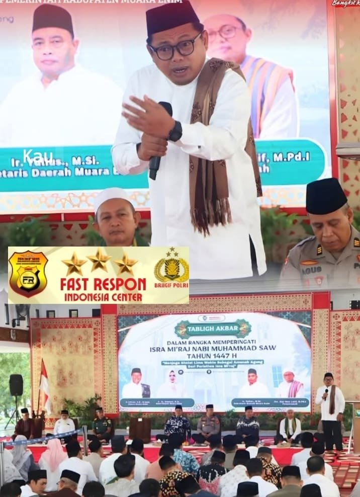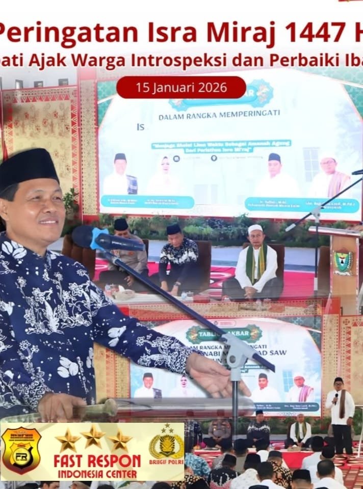 Krimsus86.com, MUARA ENIM – Bupati Muara Enim, H. Edison, S.H., M.Hum., mengajak seluruh masyarakat menjadikan peringatan Isra Mikraj Nabi Muhammad SAW 1447 Hijriah sebagai momentum introspeksi diri dan perbaikan kualitas ibadah, khususnya ibadah salat. Hal tersebut disampaikannya saat menghadiri Peringatan Isra Mikraj yang diselenggarakan oleh Pemerintah Kabupaten Muara Enim di Balai Agung Serasan Sekundang (BASS), Kamis (15/1/2026).