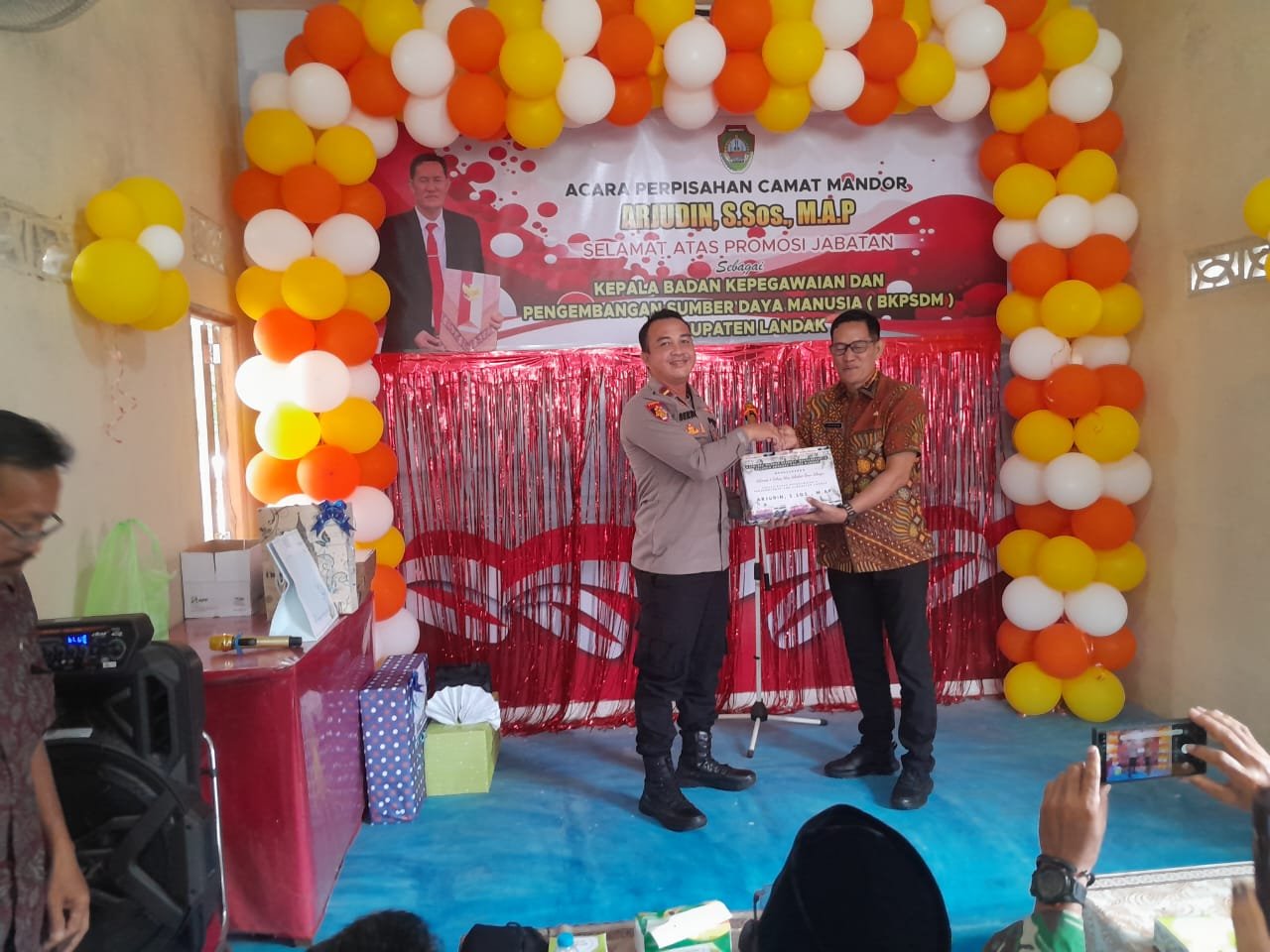 Dalam sambutannya yang menyampaikan pesan Kapolres Landak AKBP Devi Ariantari, S.H., S.I.K., Kapolsek Mandor mengapresiasi kinerja dan kerja sama Camat lama selama masa jabatan dalam menjaga keamanan dan ketertiban masyarakat (kamtibmas) di wilayah Kecamatan Mandor.