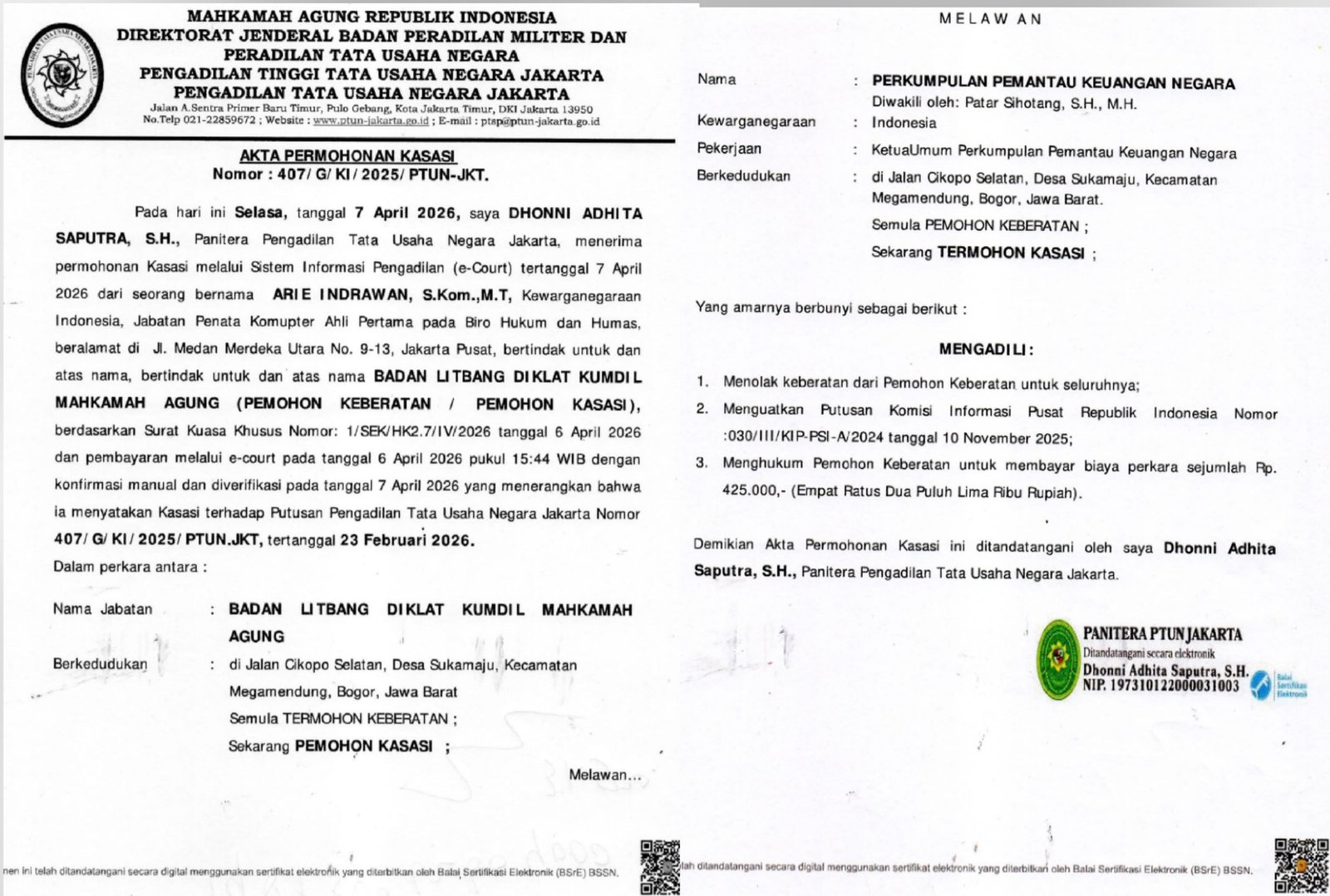 Krimsus86.com Jakarta, 9 April 2026 – Pemantau Keuangan Negara (PKN) menyampaikan kritik tegas terhadap sikap Mahkamah Agung (MA) yang dinilai tidak sejalan dengan semangat keterbukaan informasi publik sebagaimana diamanatkan dalam peraturan perundang-undangan.