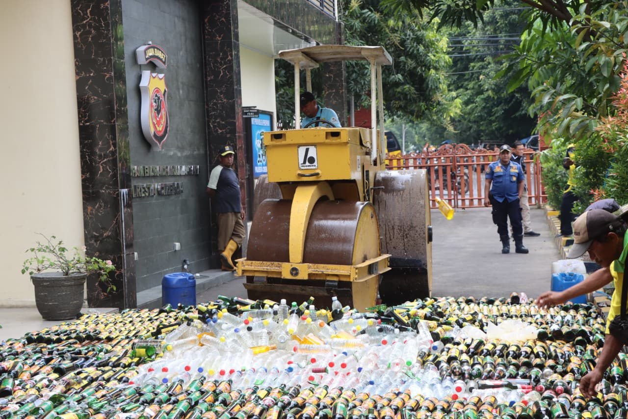 Polisi Musnahkan Ribuan Miras Berbagai Merek dan Knalpot Tidak Sesuai Spesifikasi Teknis