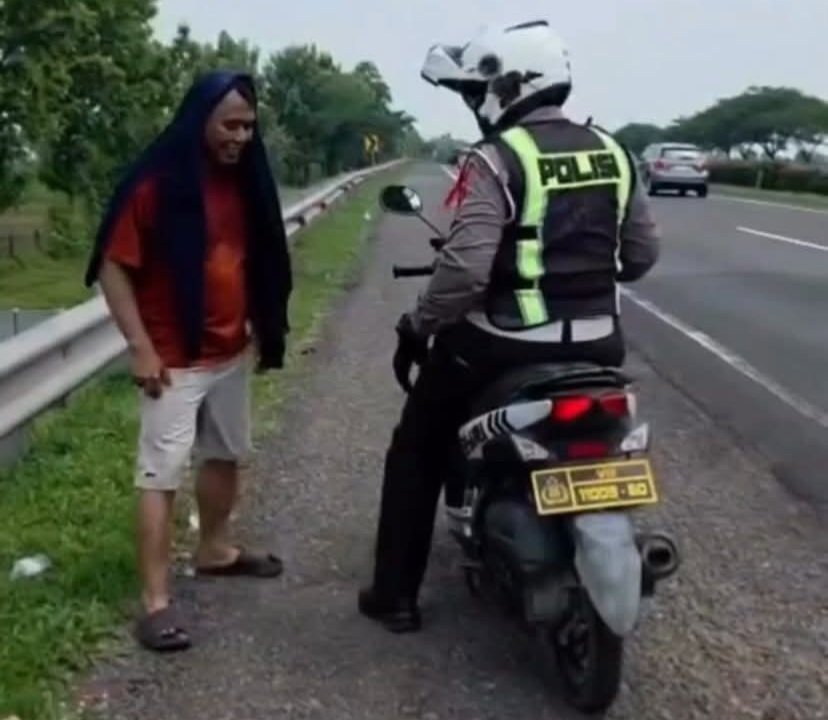Tanpa memikirkan risiko, ia memutuskan turun dari kendaraannya dan berjalan kaki menyusuri jalur tol sejauh kurang lebih satu kilometer hingga KM 134. Pada saat bersamaan, petugas patroli Satlantas Polres Indramayu yang sedang melakukan pengawasan rutin mendapati pria tersebut berjalan kaki di jalur tol.