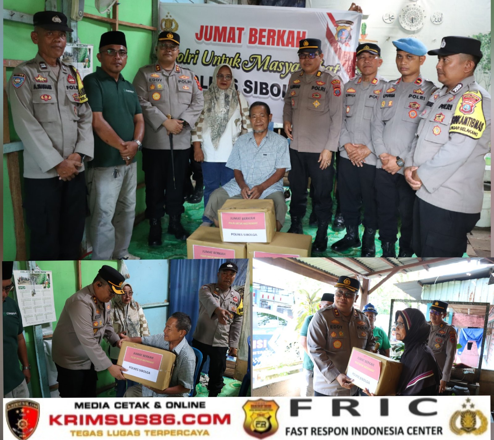 Krimsus86.com Sibolga, 17 April 2026 — Polres Sibolga kembali menunjukkan kepedulian terhadap masyarakat melalui kegiatan Jumat Berkah yang dilaksanakan pada Jumat (17/4/2026) sore. Kegiatan ini merupakan bentuk nyata kehadiran Polri di tengah masyarakat, khususnya bagi warga yang tengah menghadapi keterbatasan ekonomi dan kondisi kesehatan.