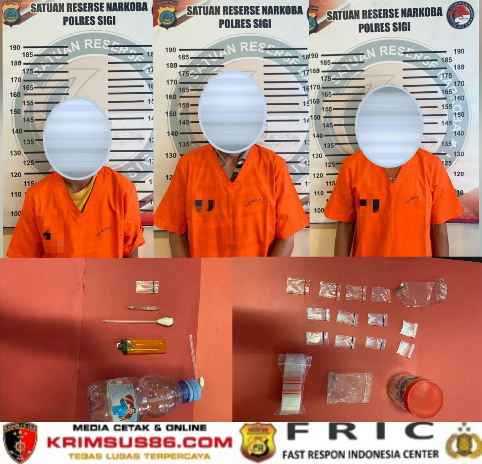 Kapolres Sigi AKBP Kari Amsah Ritonga, S.H., S.I.K., M.H., melalui Kasat Resnarkoba Iptu Chandra, S.H. mengatakan para pelaku ditangkap di sebuah rumah di Desa Bunga setelah polisi menerima laporan masyarakat terkait dugaan aktivitas peredaran sabu.
