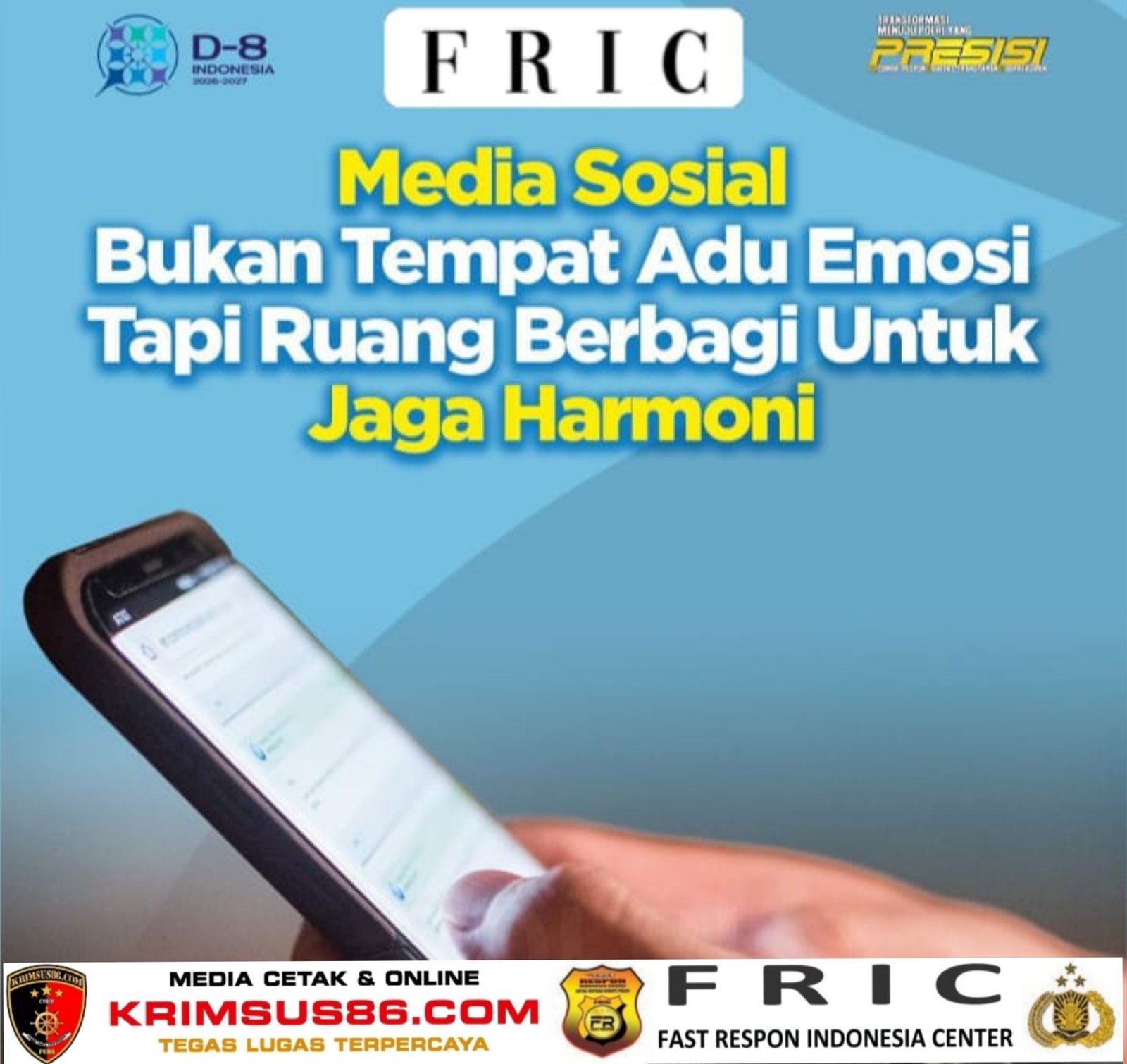 Krimsus86.com Jakarta, 30 Maret 2026 — Kepolisian Negara Republik Indonesia (Polri) melalui Divisi Humas kembali mengingatkan seluruh masyarakat untuk menggunakan media sosial secara bijak, cerdas, dan bertanggung jawab di tengah derasnya arus informasi digital yang semakin cepat dan masif.