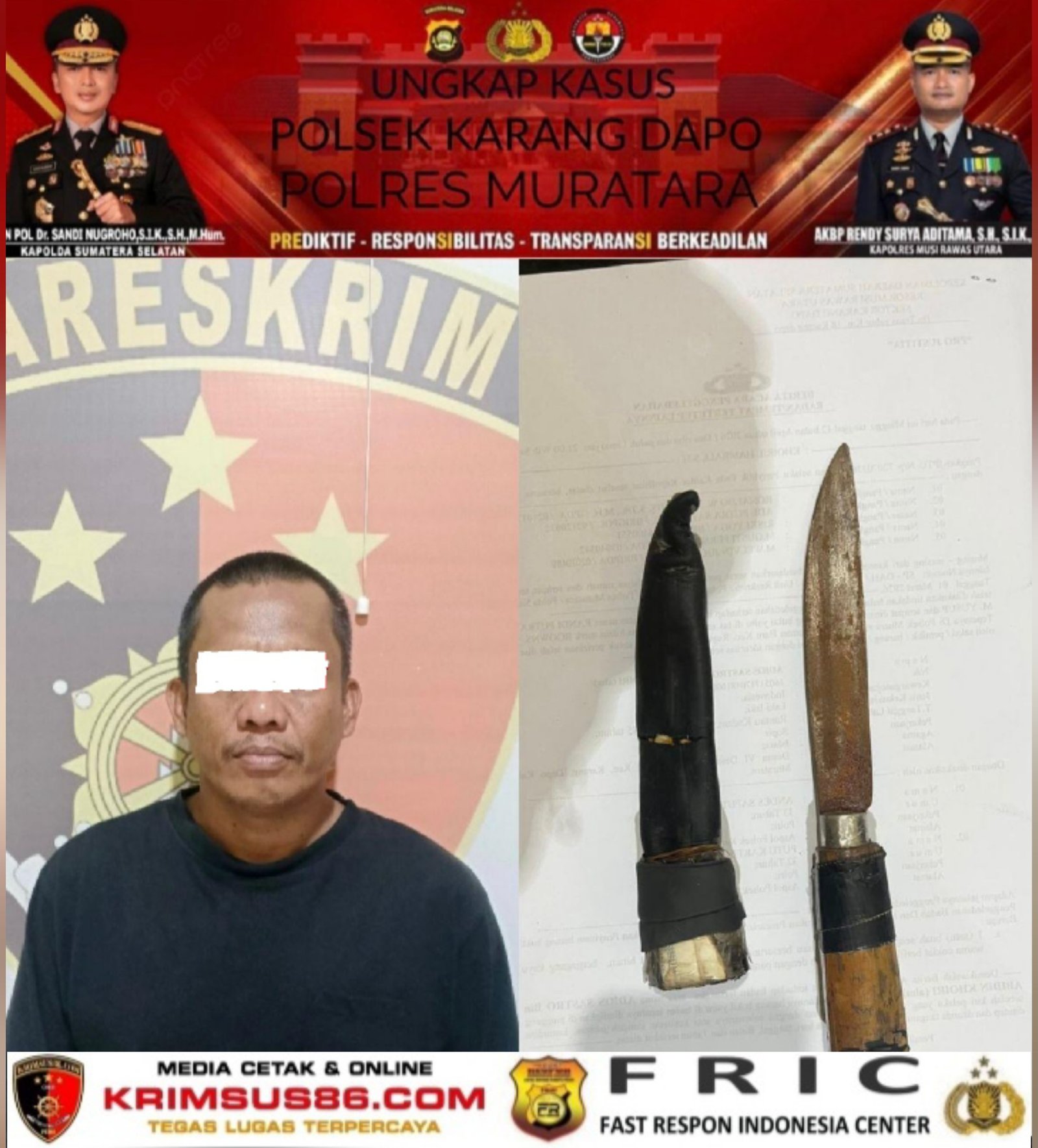 Krimsus86.com Musi Rawas Utara – Kepolisian Sektor (Polsek) Karang Dapo berhasil mengamankan seorang pria berinisial AS (45), warga Dusun IV Desa Rantau Kadam, Kecamatan Karang Dapo, Kabupaten Musi Rawas Utara, Provinsi Sumatera Selatan, pada Minggu, 12 April 2026, sekitar pukul 20.00 WIB.