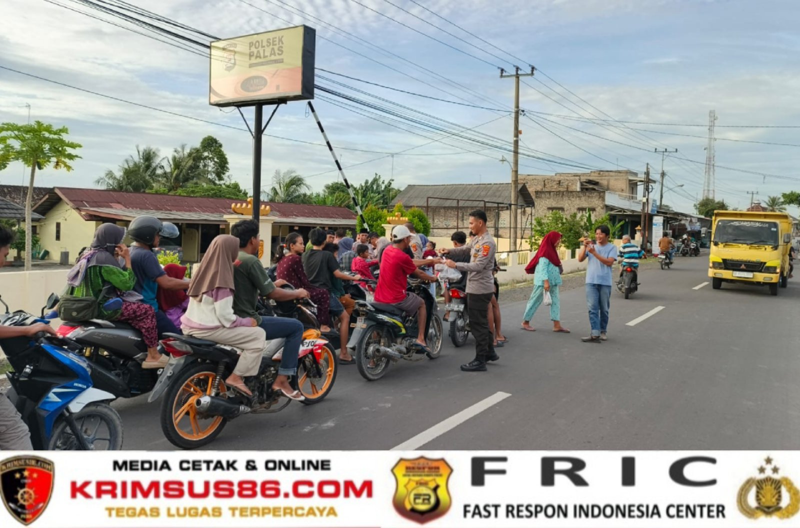 Kegiatan yang dimulai pada sore hari itu berjalan dengan aman hingga selesai. Personel Polsek Palas turut mengatur arus lalu lintas agar pembagian takjil tidak mengganggu pengguna jalan lainnya.