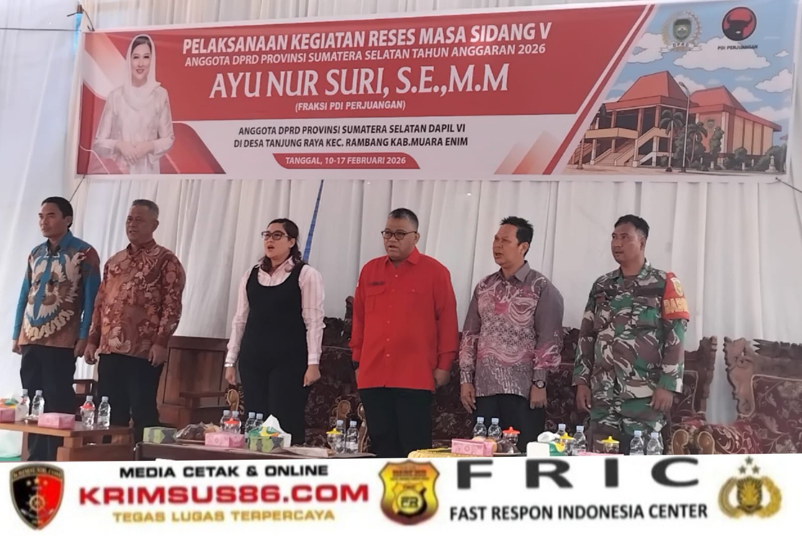 Rambang, 15 Februari 2026 — Anggota DPRD Provinsi Sumatera Selatan Fraksi PDI Perjuangan, Ayu Nur Suri, melaksanakan kegiatan reses Masa Sidang V Tahun 2026 di Kecamatan Rambang, Kabupaten Muara Enim.