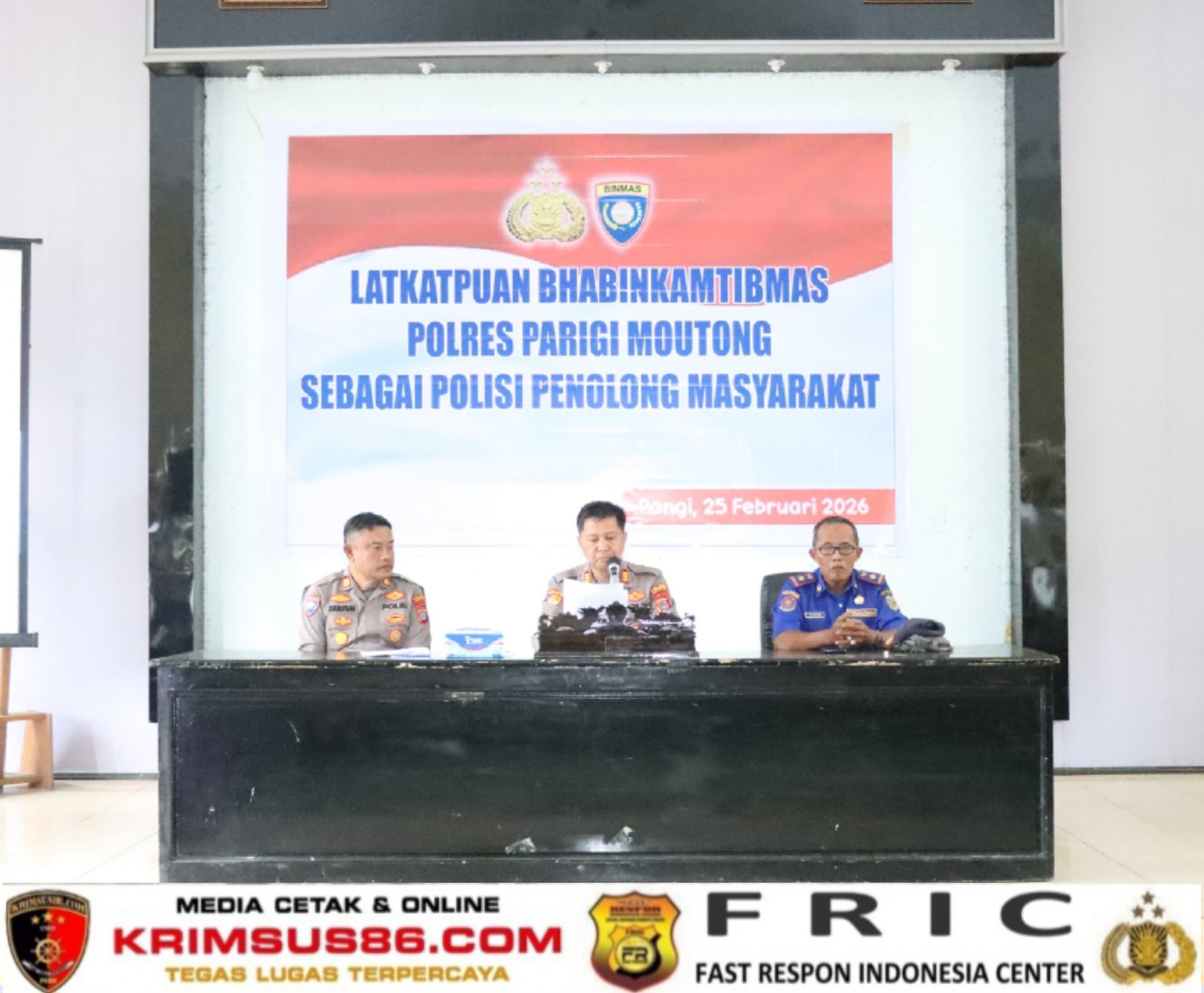 Krimsus86.com, Parigi Moutong – Dalam rangka memperkuat peran pembinaan dan pelayanan kepada masyarakat, Satuan Pembinaan Masyarakat (Sat Binmas) Polres Parigi Moutong menggelar Pelatihan Fungsi Teknis Binmas dengan mengusung tema besar “POLISI PENOLONG MASYARAKAT”, Rabu (25/2/2026) pukul 09.30 WITA, bertempat di Gedung Pesat Gatra.