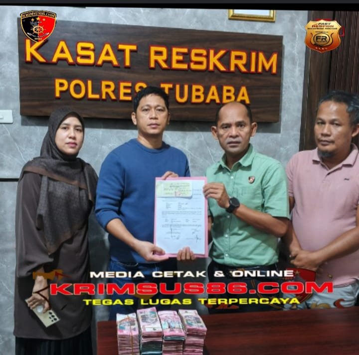Krimsus86.com, Tulang Bawang Barat, 3 Maret 2026 – Penyidik Satuan Reserse Kriminal (Sat Reskrim) Kepolisian Resor Tulang Bawang Barat, Polda Lampung, mengembalikan uang sebesar Rp300 juta kepada korban tindak pidana berinisial BS dan MMW. Penyerahan uang tersebut dilaksanakan di ruang Kasat Reskrim Polres Tulang Bawang Barat pada Selasa (03/03/2026).