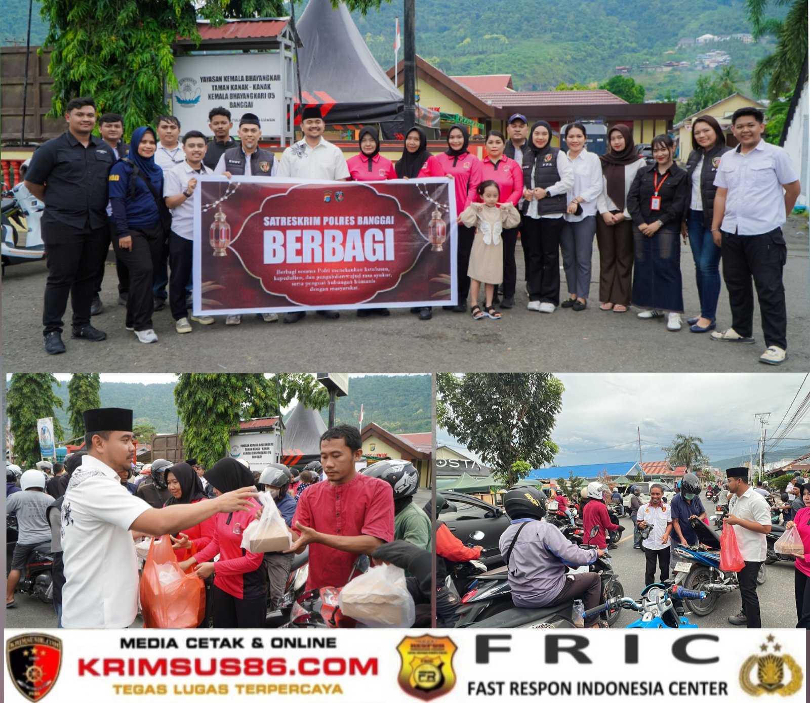 Krimsus86.com, Banggai, Sulawesi Tengah – 11 Maret 2026 – Satuan Reserse Kriminal (Satreskrim) Polres Banggai menggelar kegiatan sosial berupa pembagian takjil kepada masyarakat di Kota Luwuk. Kegiatan ini dilaksanakan di Tugu 0 KM, tepat di depan Mapolsek Luwuk, dengan membagikan sekitar 400 kotak takjil kepada pengendara dan warga yang melintas menjelang waktu berbuka puasa.
