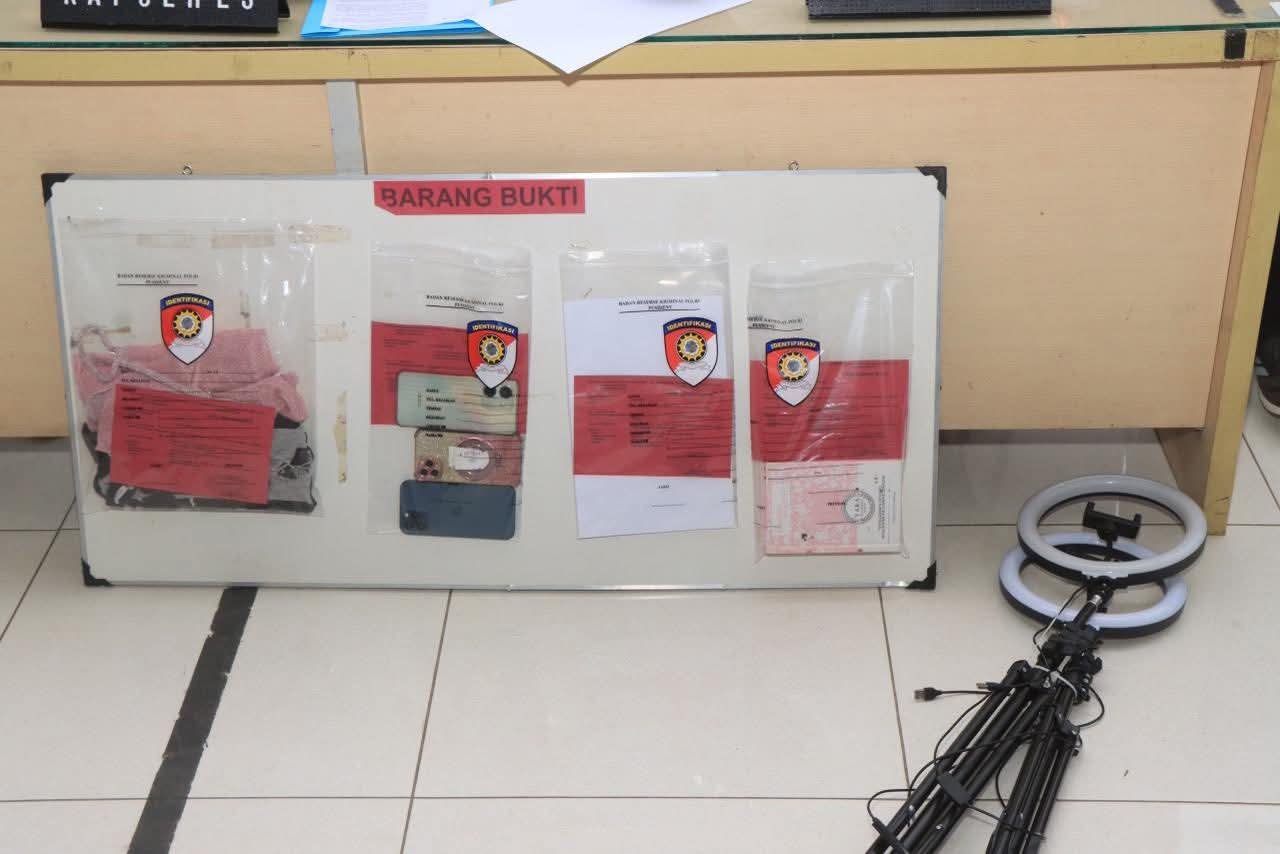 Kapolres menyebut sejumlah barang bukti diamankan petugas, di antaranya flash disk berisi rekaman video, dua unit handphone (Oppo dan iPhone), pelumas, kondom, dua buah ring light, seperangkat make-up, hingga pakaian dalam.