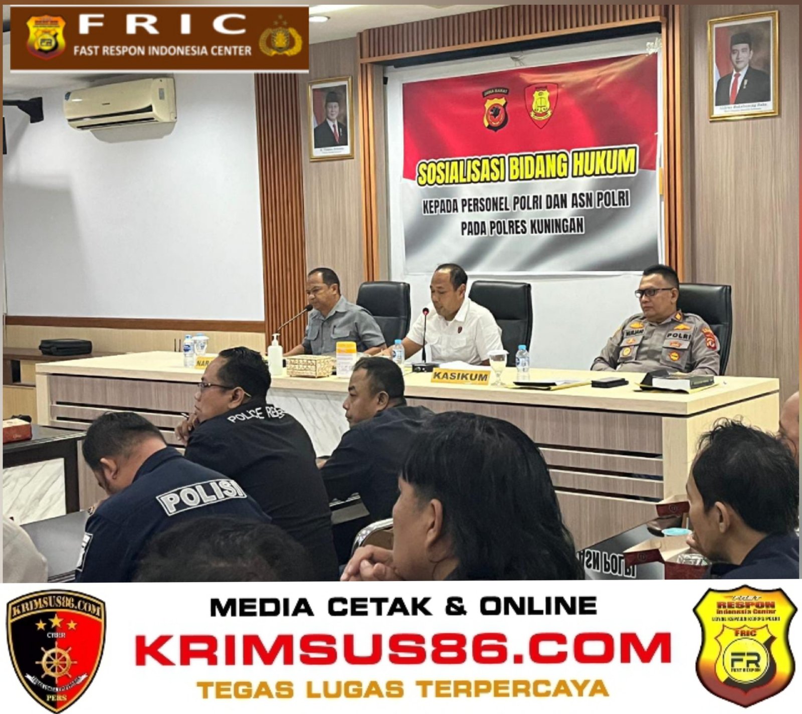 Krimsus86.com, Kuningan – Polres Kuningan melaksanakan kegiatan Sosialisasi Bidang Hukum kepada personel Polri dan Aparatur Sipil Negara (ASN) Polri di lingkungan Polres Kuningan, Rabu (28/01/2026). Kegiatan tersebut dipimpin langsung oleh Wakapolres Kuningan, Kompol Deni Rahmanto, S.S., S.I.K., M.M.