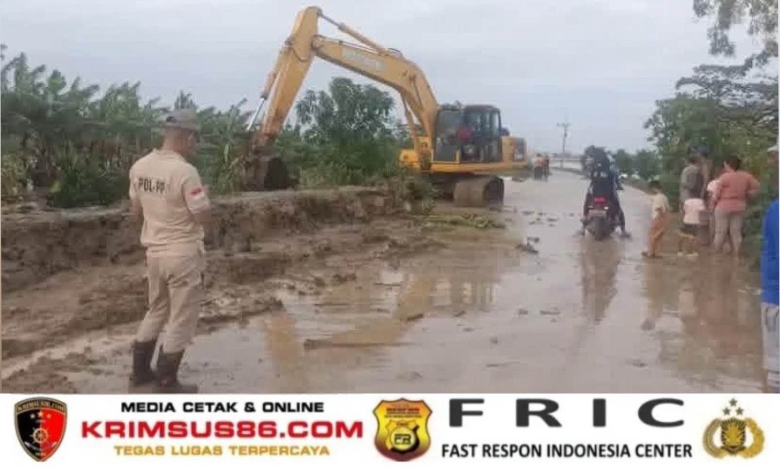 “Saat ini alat berat berupa excavator telah dikerahkan untuk meninggikan tanggul sebagai langkah antisipasi agar luapan air tidak meluas ke wilayah lainnya,” jelas Camat Losarang.
