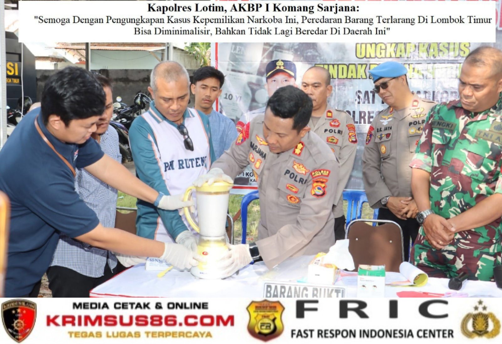 Kegiatan pemusnahan tersebut dipimpin langsung oleh Kapolres Lombok Timur, I Komang Sarjana, sebagai bentuk transparansi penanganan perkara serta komitmen aparat penegak hukum dalam memerangi peredaran narkoba di wilayah hukum Polres Lotim.
