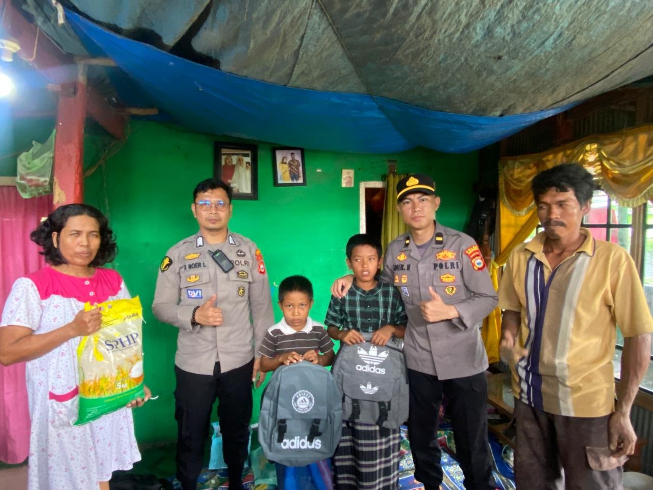 Tidak hanya memberikan layanan kesehatan, Tim Dokkes bersama Kapolres juga menyalurkan bantuan paket sembako dan tas sekolah baru kepada ketiga anak tersebut. Bantuan ini diharapkan dapat meringankan beban ekonomi keluarga dan mendukung semangat belajar mereka.