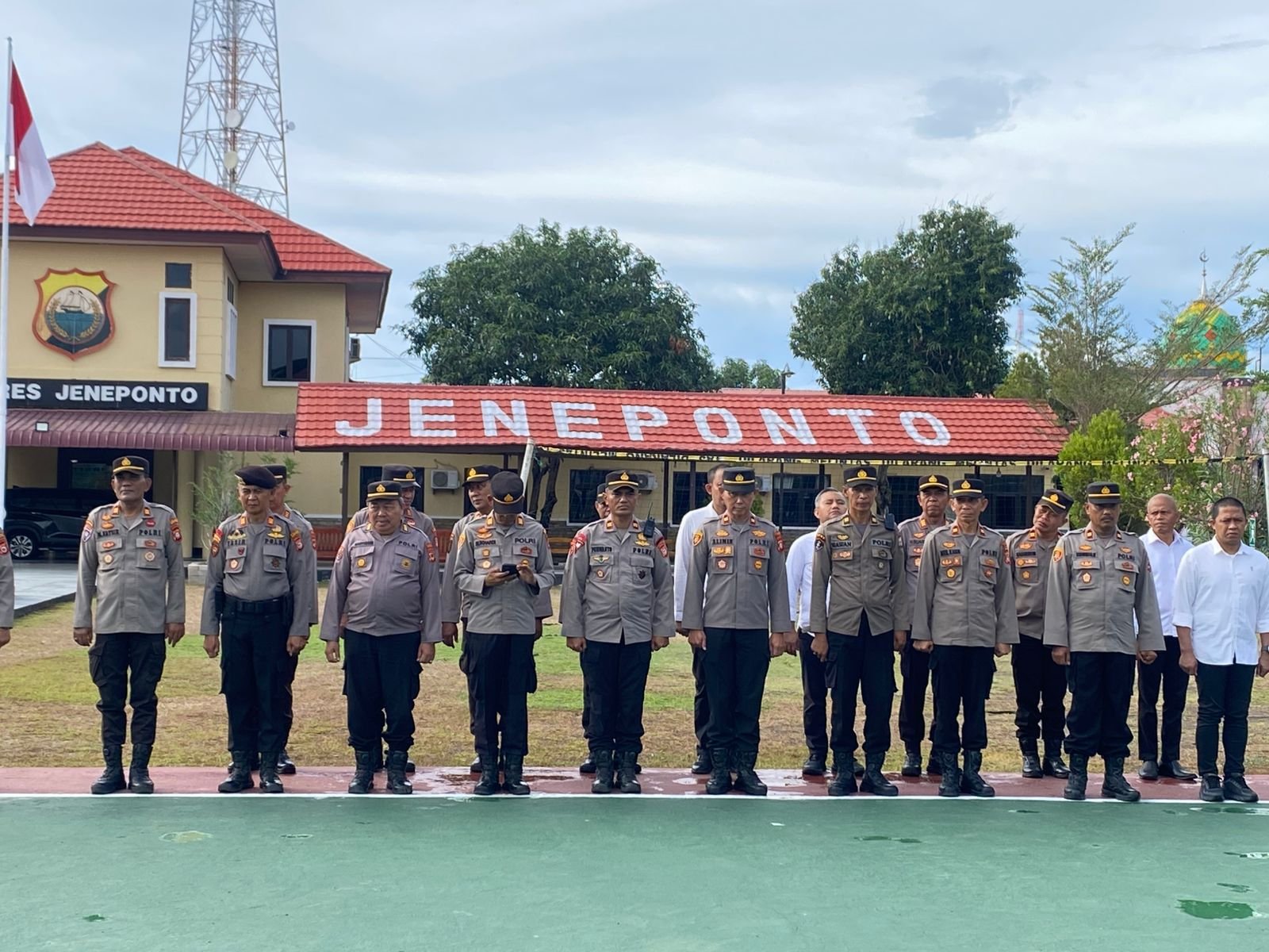 Apel yang berlangsung di lapangan apel Mapolres Jeneponto ini sekaligus menjadi forum komunikasi pimpinan (jam pimpinan). Kegiatan ini dihadiri secara lengkap oleh seluruh jajaran, termasuk Wakil Kapolres Jeneponto (Waka Polres) Kompol Sahabuddin, SE, M.Ap., Pejabat Utama (PJU), para Kapolsek beserta Kanit Polsek jajaran, serta seluruh personel Perwira, Bintara, dan ASN.