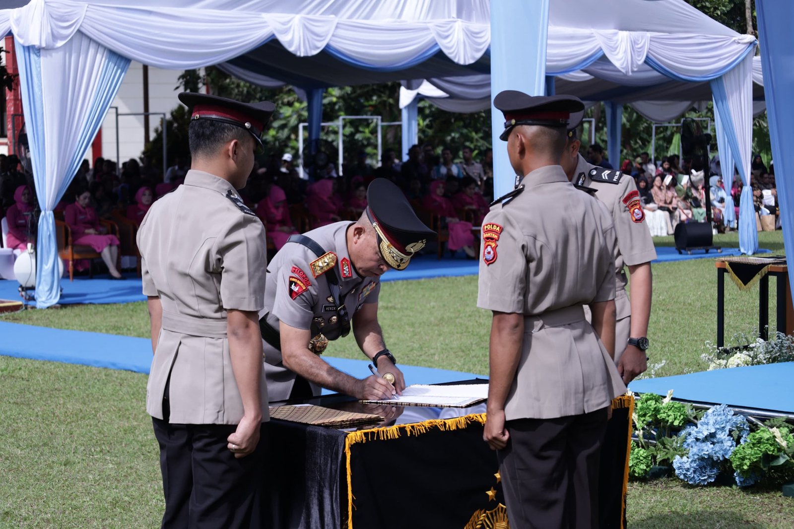 Selain itu, Kapolda Banten juga menekankan pentingnya integritas, profesionalisme, dan sikap humanis dalam memberikan pelayanan kepada masyarakat. “Sebagai Bhayangkara Negara, saudara dituntut untuk mampu memberikan perlindungan, pengayoman, dan pelayanan terbaik kepada masyarakat, serta menjaga kehormatan dan nama baik institusi Polri di mana pun bertugas,” tegasnya.