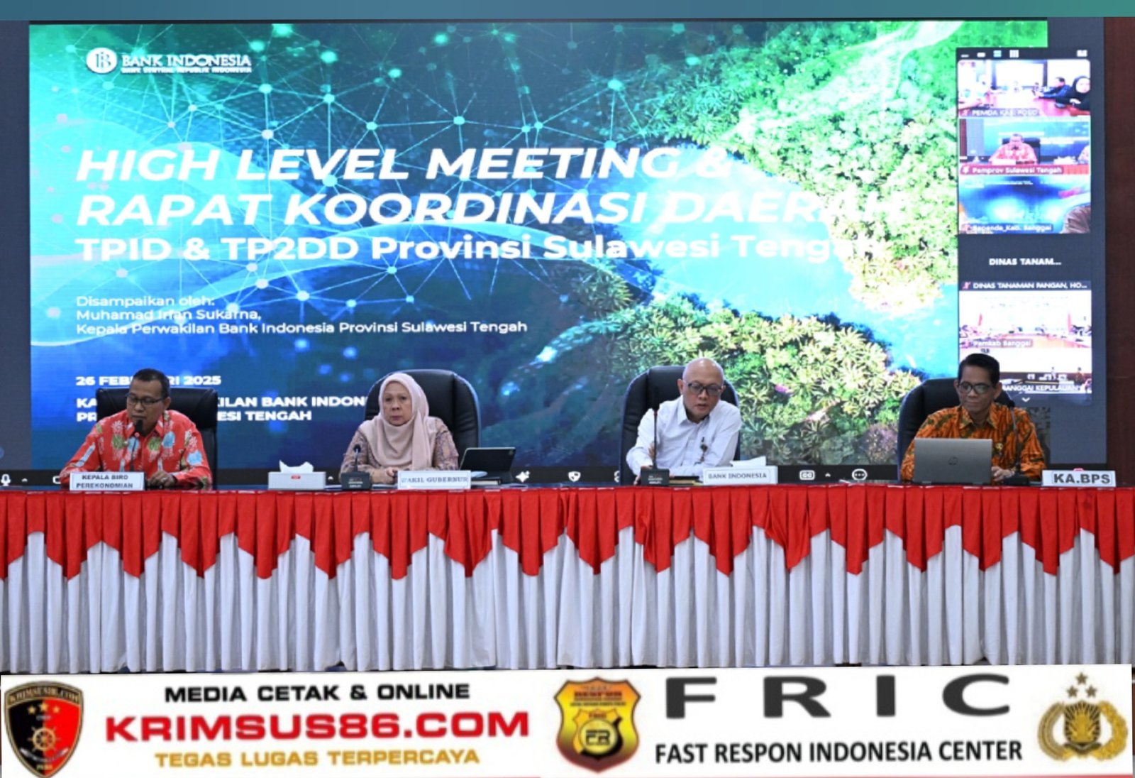 Krimsus86.com, Palu, 26 Februari 2026 – Wakil Gubernur Sulawesi Tengah, dr. Reny A. Lamadjido, Sp.PK., M.Kes, mengajak seluruh Tim Pengendalian Inflasi Daerah (TPID) kabupaten/kota se-Sulawesi Tengah untuk bergerak cepat dan memperkuat sinergi dalam mengantisipasi kenaikan inflasi menjelang Hari Raya Idul Fitri 1447 H.