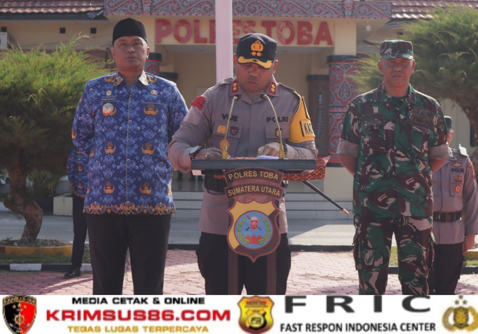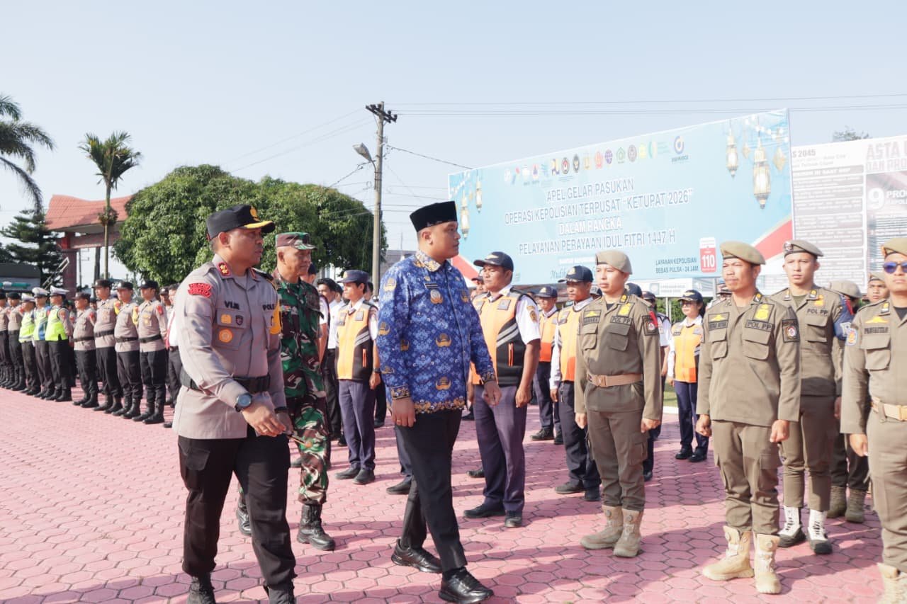 Krimsus86.com Toba, Sumatera Utara – Kamis, 12 Maret 2026 – Polres Toba menggelar Apel Gelar Pasukan dalam rangka pelaksanaan Operasi Ketupat Toba 2026 untuk menjamin keamanan dan kelancaran arus mudik serta perayaan Idul Fitri. Kegiatan berlangsung di Lapangan Apel Polres Toba dan dipimpin oleh Kapolres Toba Vinsensius Jimmy Parapaga, didampingi Bupati Toba Effendi Napitupulu, serta Pabung Kodim 0210/TU Mayor Arm Guntur Sebayang.