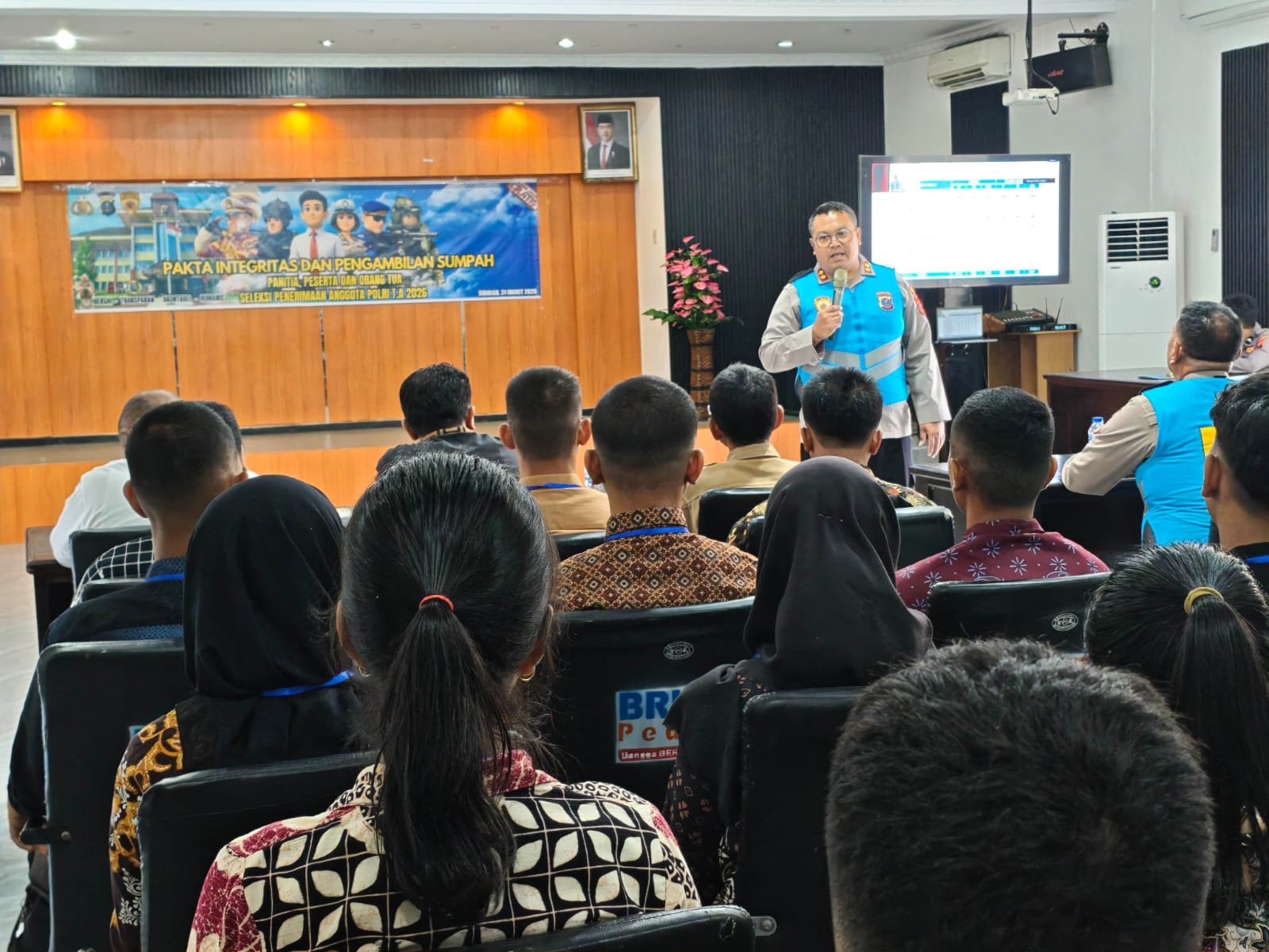 Kegiatan ini bertujuan untuk menegaskan komitmen seluruh pihak dalam pelaksanaan seleksi penerimaan anggota Polri yang bersih, transparan, akuntabel, dan humanis (BETAH). Melalui pengambilan sumpah dan penandatanganan pakta integritas, diharapkan seluruh proses seleksi dapat berjalan secara objektif, bebas dari praktik korupsi, kolusi, dan nepotisme (KKN), serta menjunjung tinggi prinsip kejujuran dan keadilan.